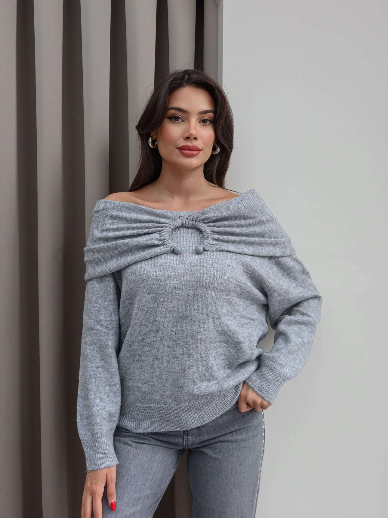 Açık Omuz Aksesuarlı Triko Kazak (EH-6067-GRİ)