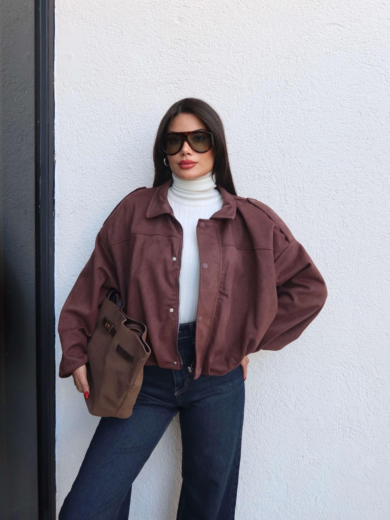 Apoletli Süet Bomber Ceket (EH-6031-KAHVERENGİ)