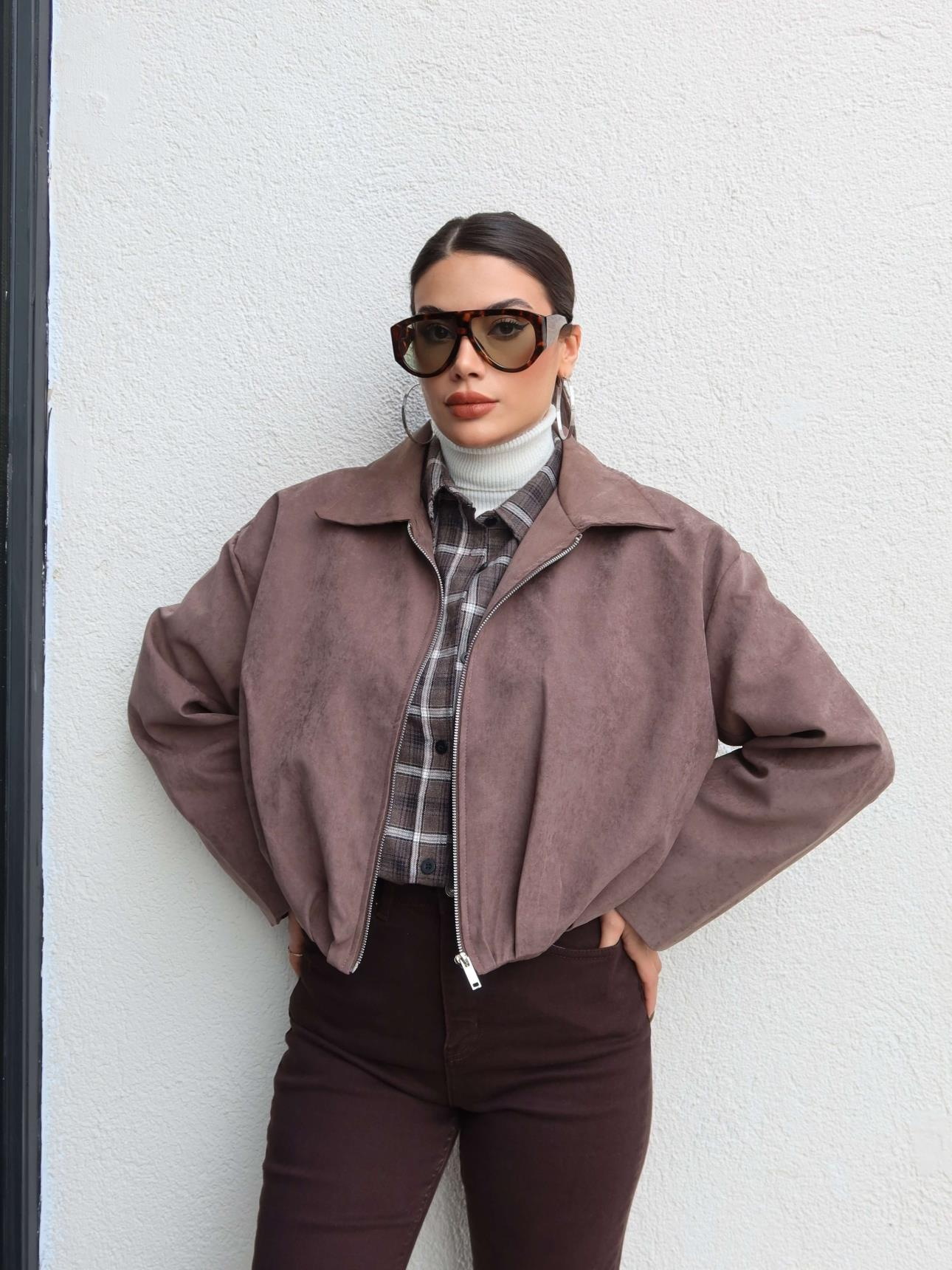Arkası Pileli Nubuk Ceket (EH-6136-KAHVERENGİ)
