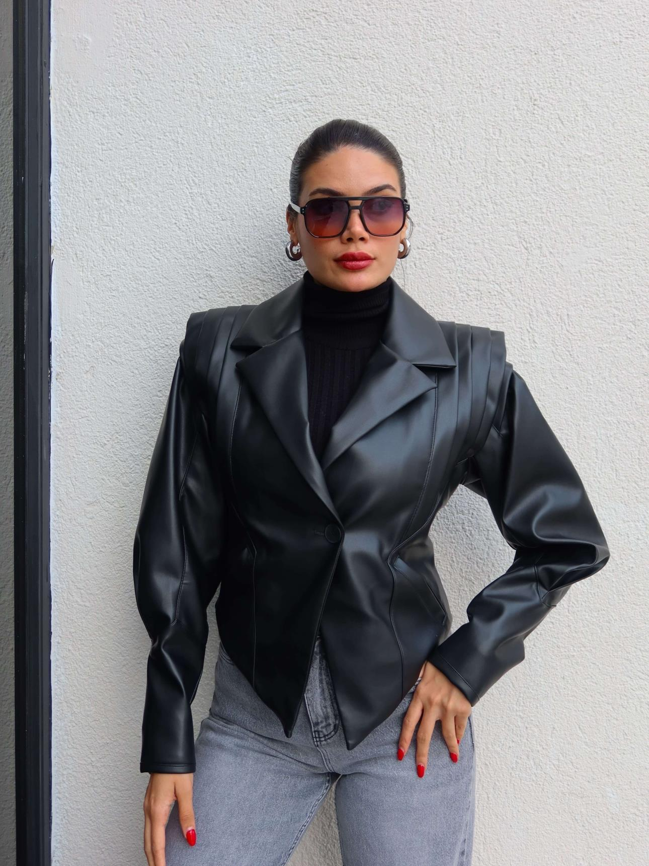 Asimetrik Kesim Deri Ceket (EH-6083-SİYAH)