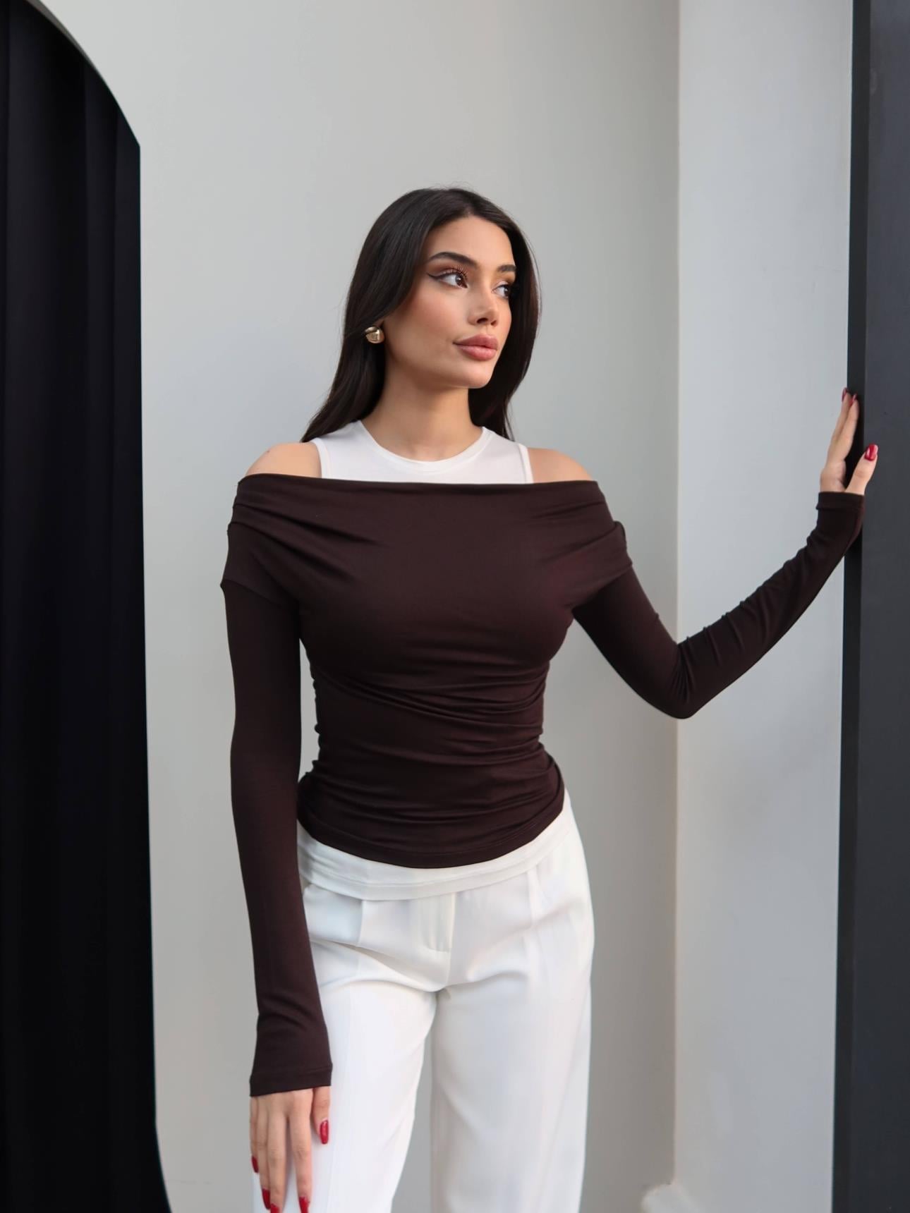Çekimde S beden kullanılmıştır. Ölçümler S bedene göre yapılmıştır.