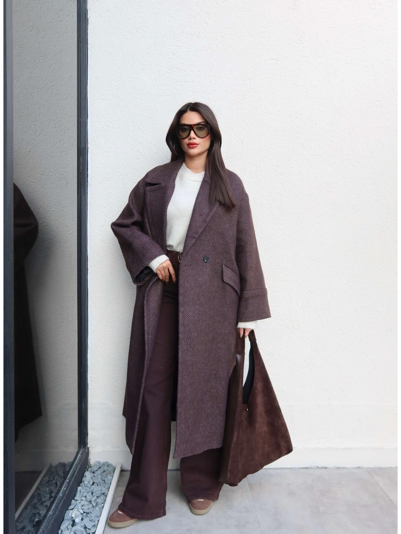 Balıksırtı Desen Cepli Uzun Kaban (EH-6148-ACIKAHVE)