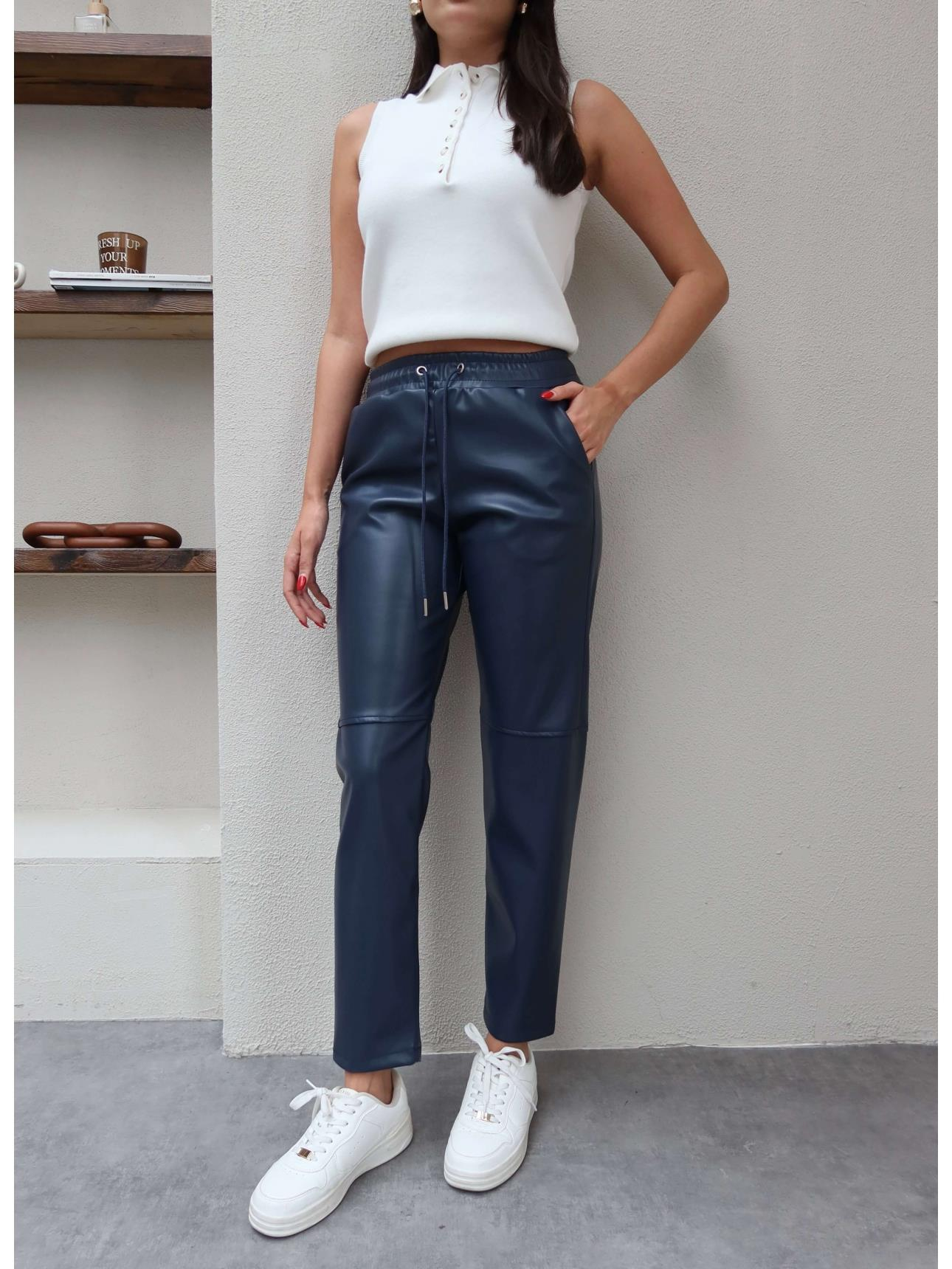Bel Lastik Dikiş Detaylı Deri Pantolon (EH-5970-LACİVERT)
