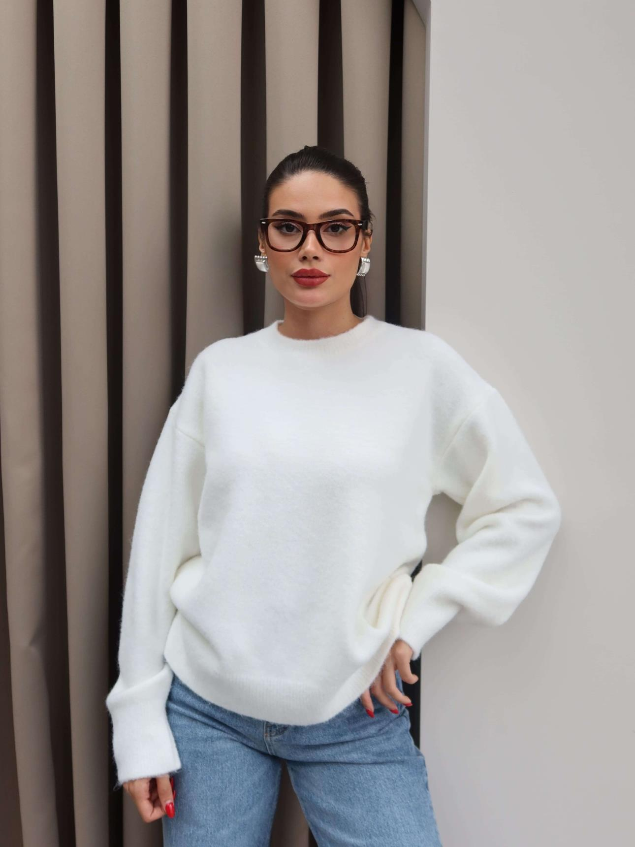 Bisiklet Yaka Yumuşak Dokulu Oversize Kazak (EH-6075-EKRU)
