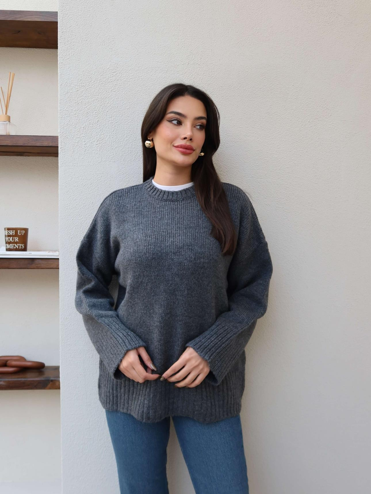 Bisiklet Yaka Yumuşak Triko Kazak (EH-6156-ANTRASİT)