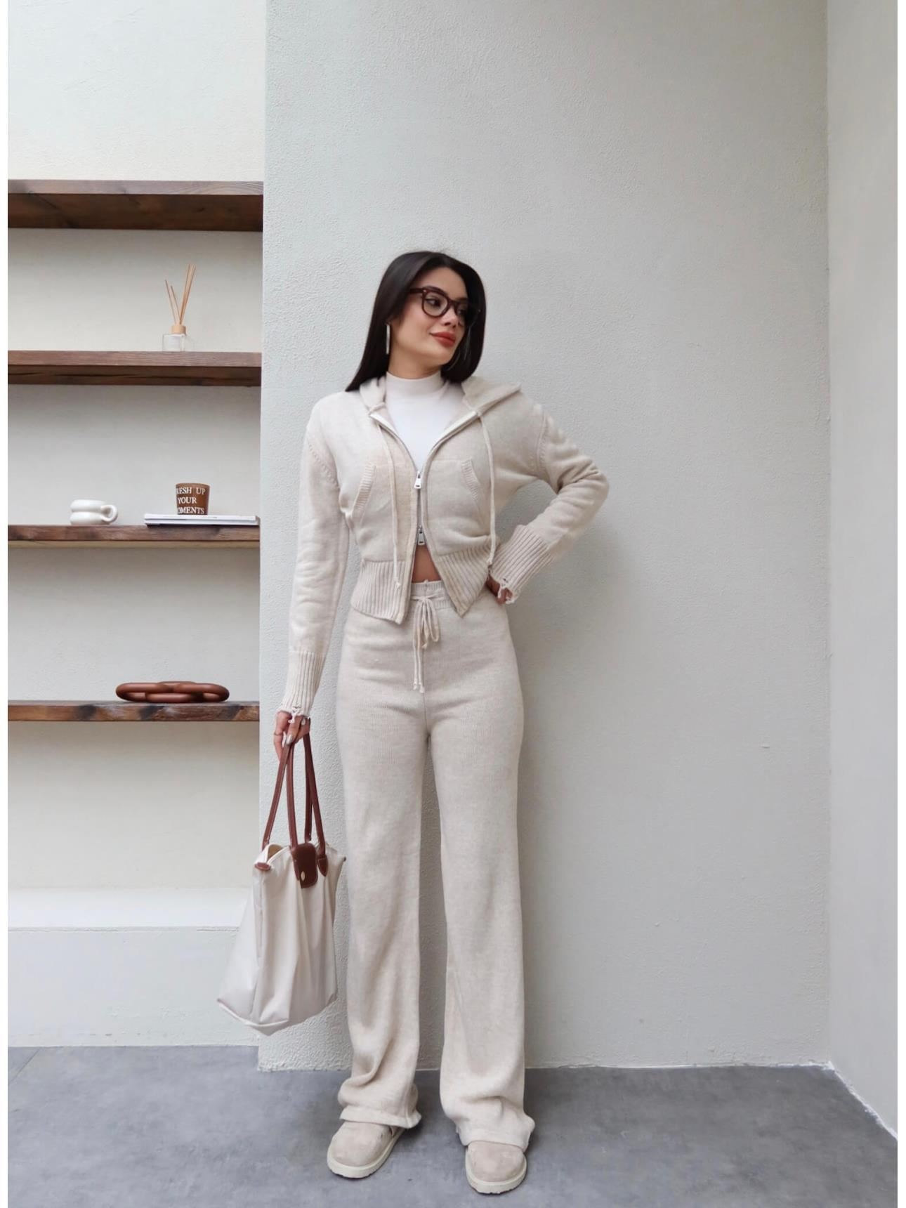 Çift Fermuarlı Triko Takım (EH-6123-TAŞ)