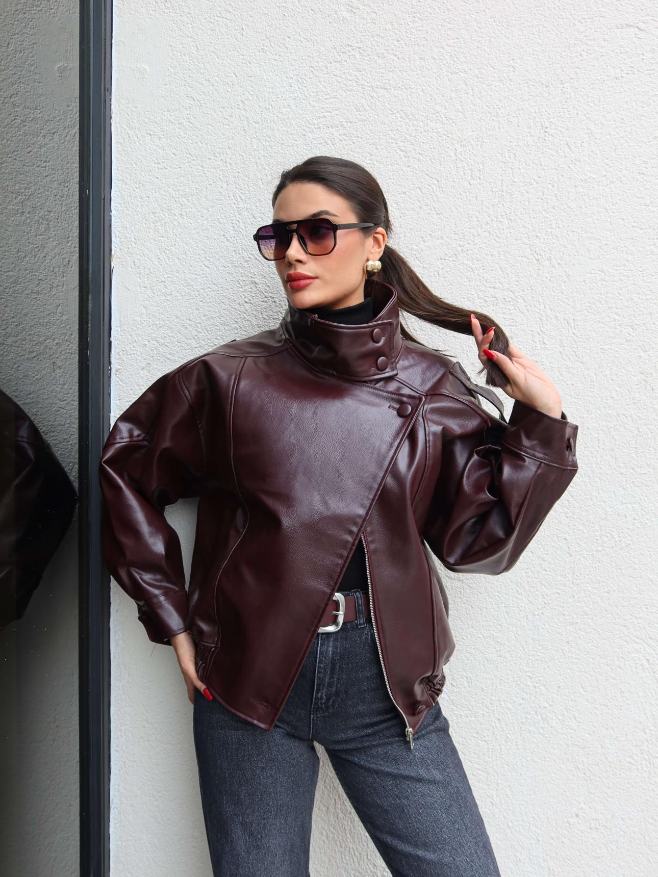 Dik Yaka Bomber Deri Ceket (EH-6091-BORDO)
