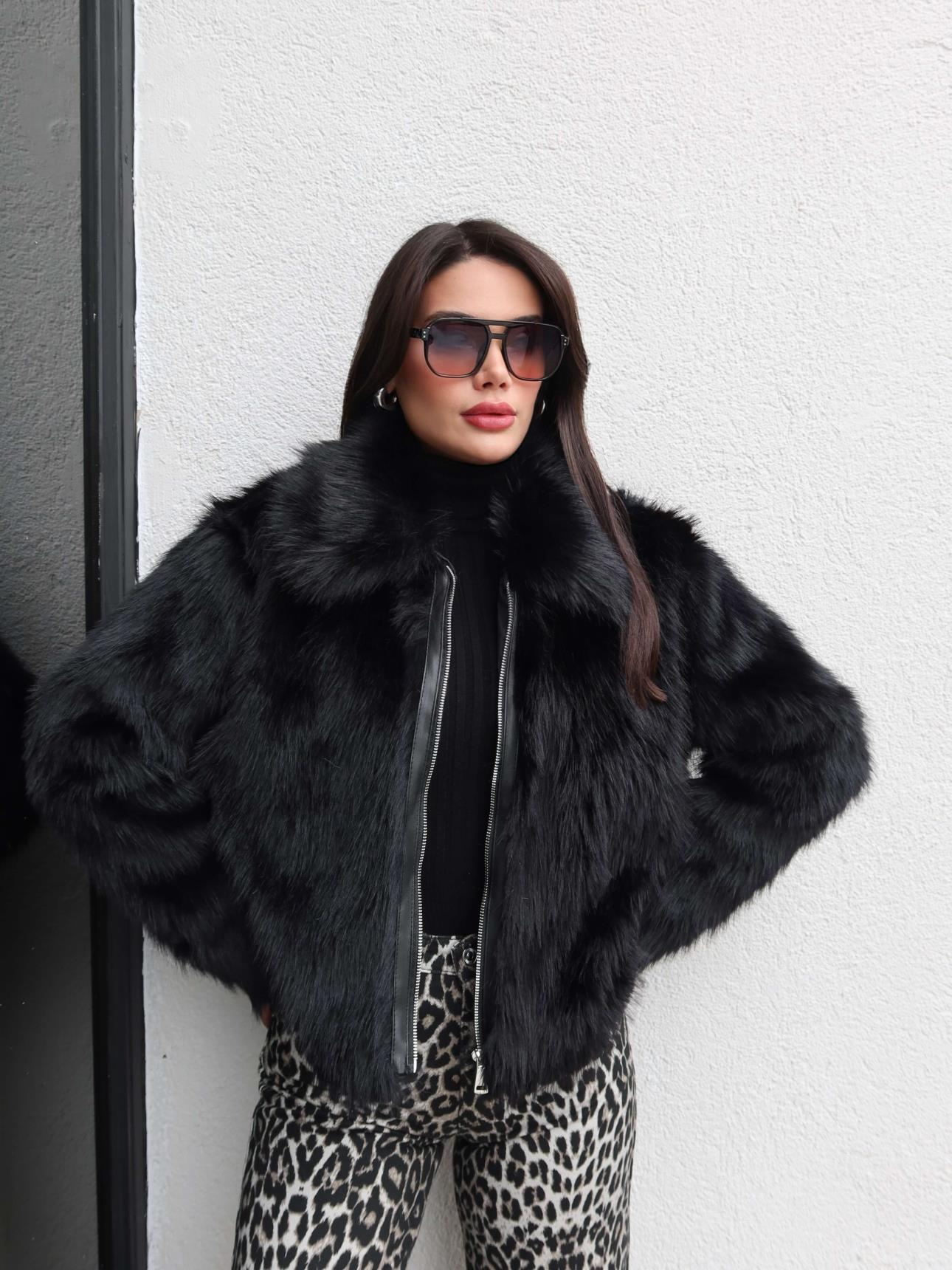 Fermuar Detay İthal Kürk (EH-4834-SİYAH)