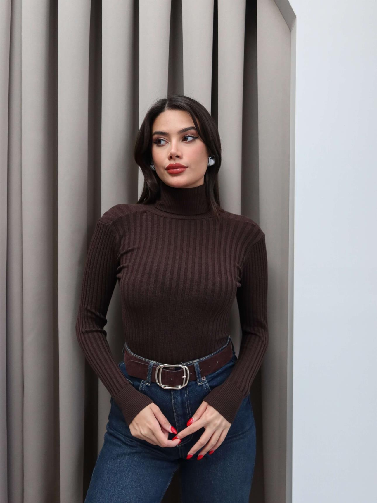 Fitilli Balıkçı Yaka Kazak (EH-6064-ACIKAHVE)