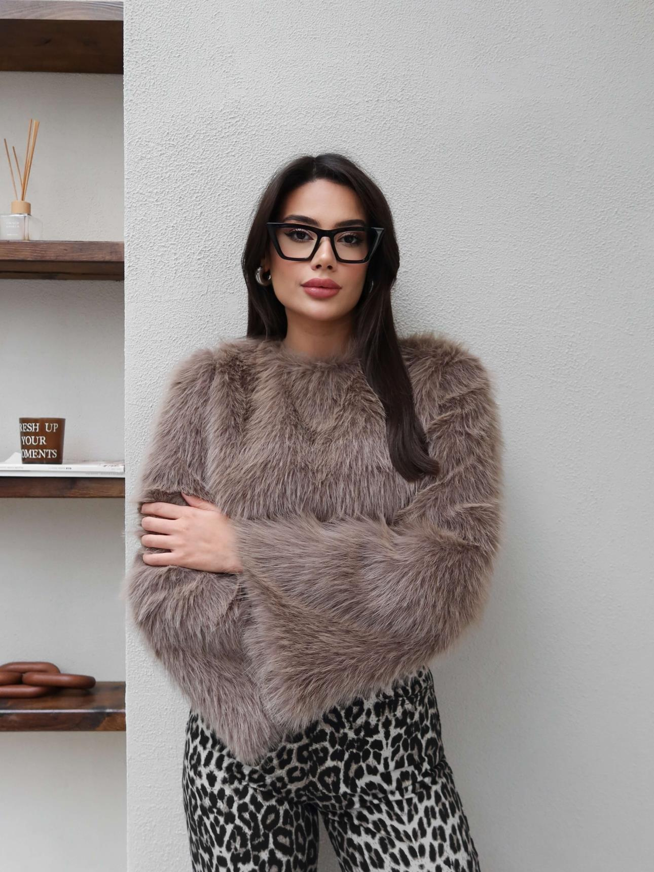 Geniş Kol Kürklü Kazak (EH-6098-VİZON)