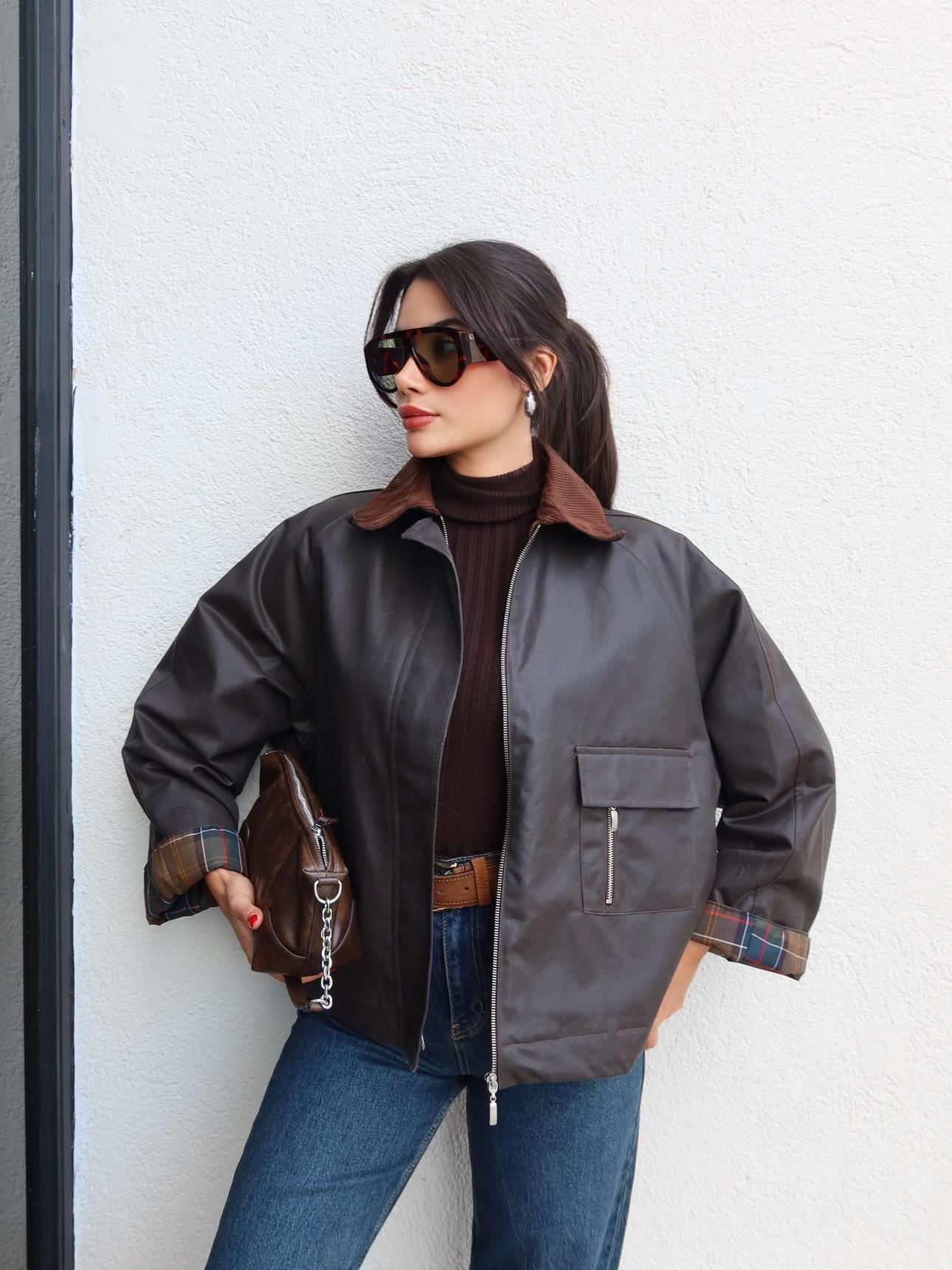 Kadife Yaka Cep Detay Ceket (EH-6056-KAHVE)