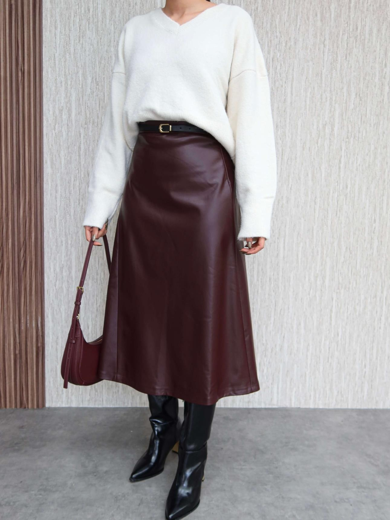 Kemerli Midi Deri Etek (EH-6133-BORDO)