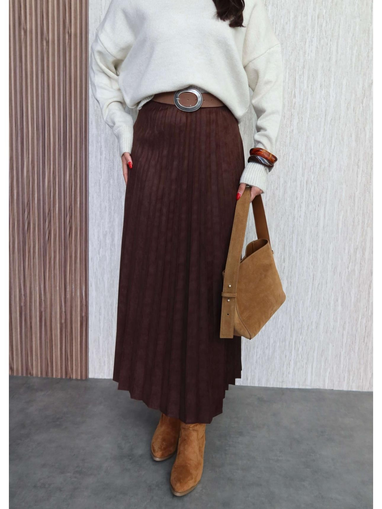 Kemerli Pilise Süet Uzun Etek (EH-6017-ACIKAHVE)