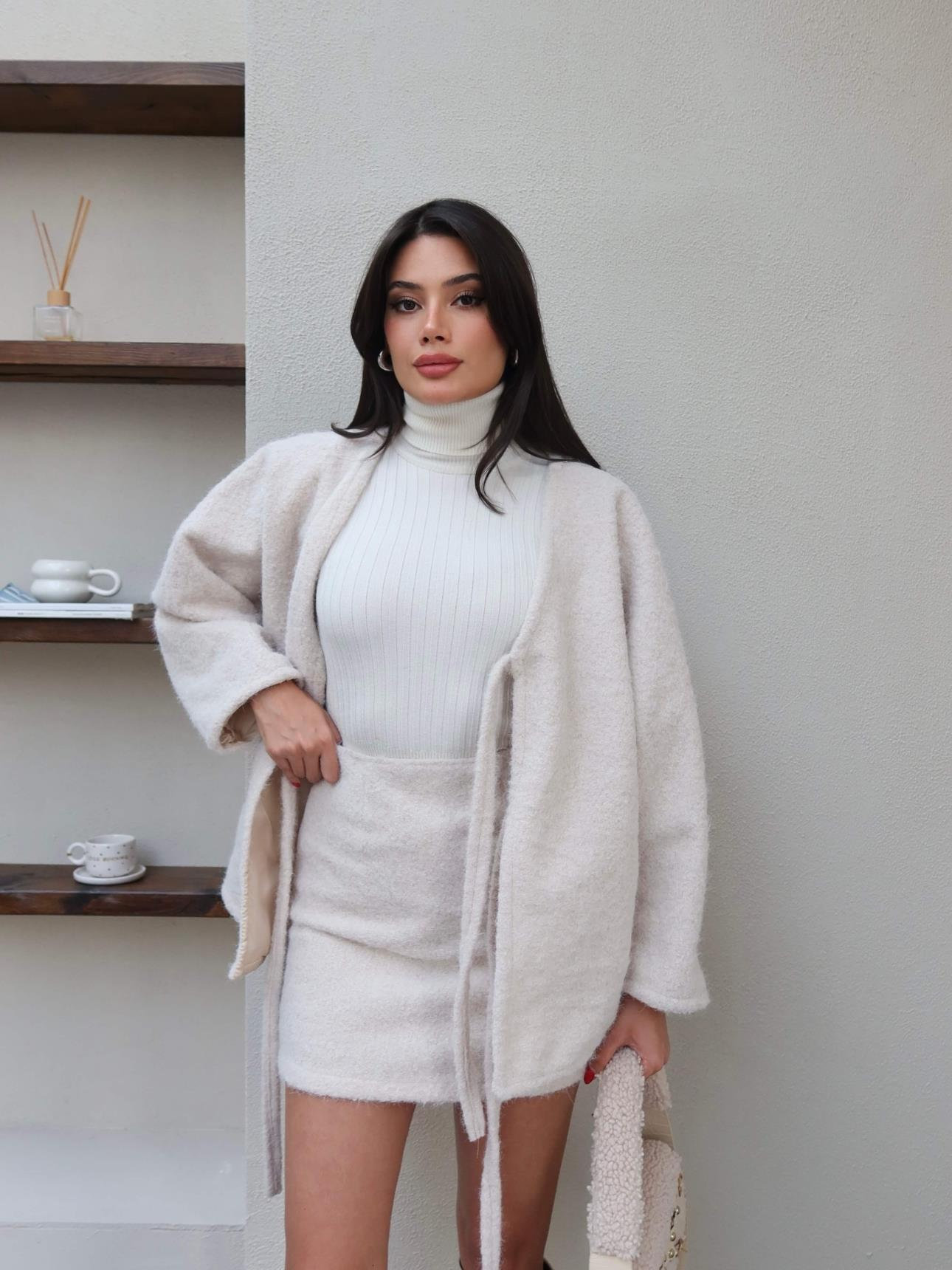 Çekimde S beden kullanılmıştır. Ölçümler S bedene göre yapılmıştır.