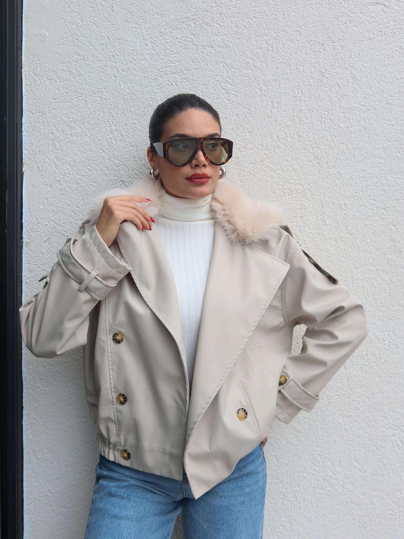 Kürk Yaka Bel Lastikli Trench (EH-6069-TAŞ)