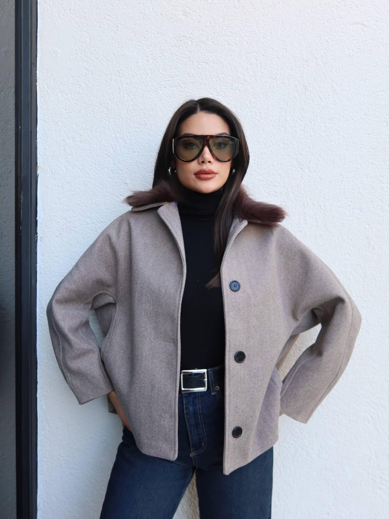 Kürk Yaka Kaşe Ceket (EH-6105-SÜTLÜKAHVE)