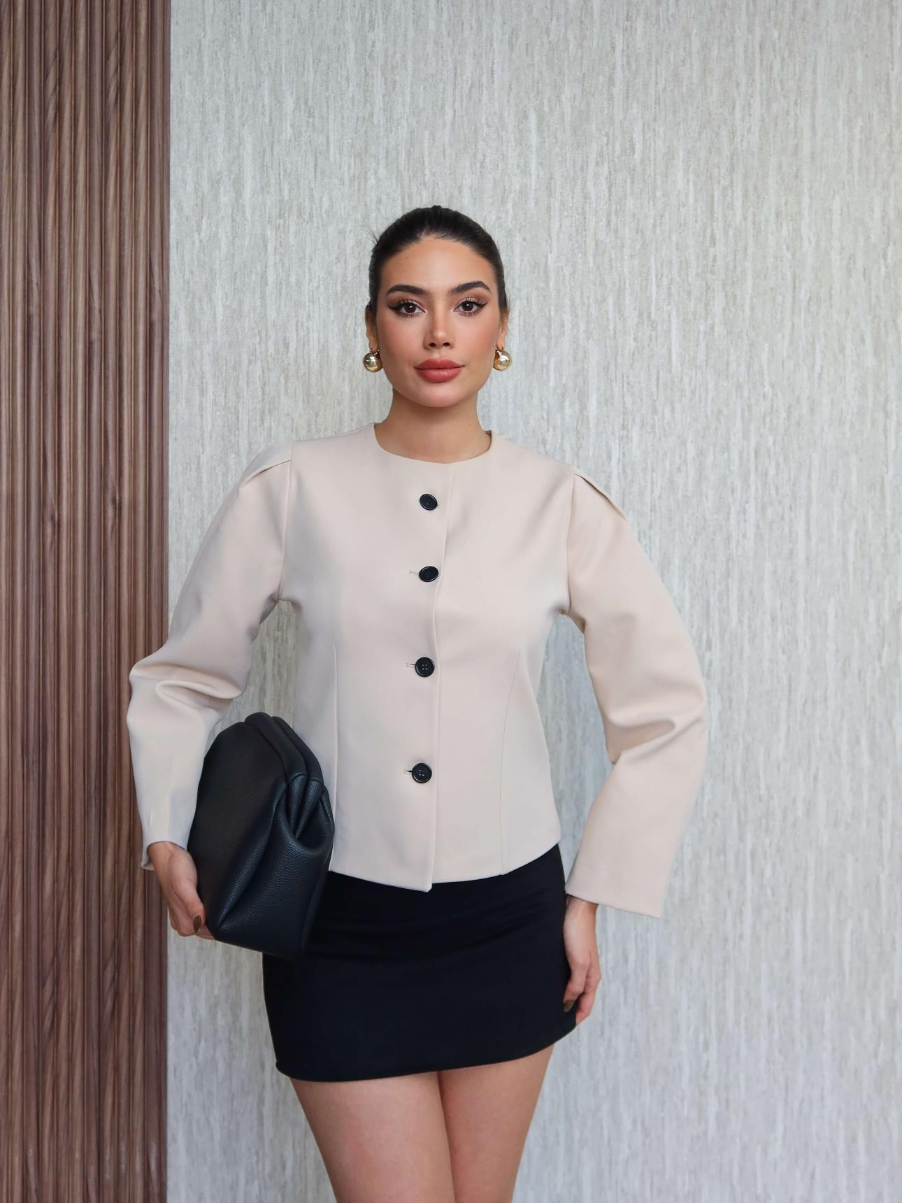 Omuz Pensli Düğmeli Ceket (EH-6154-KREM)