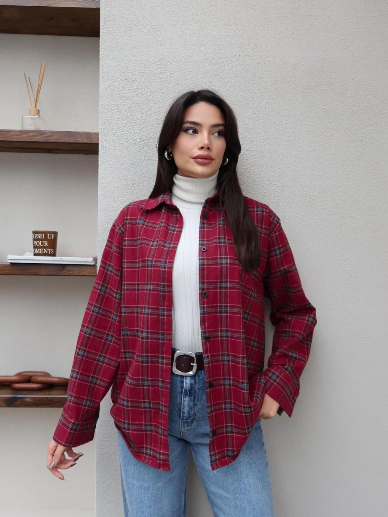 Oversize Ekose Gömlek (EH-6045-KOYUKIRMIZI)