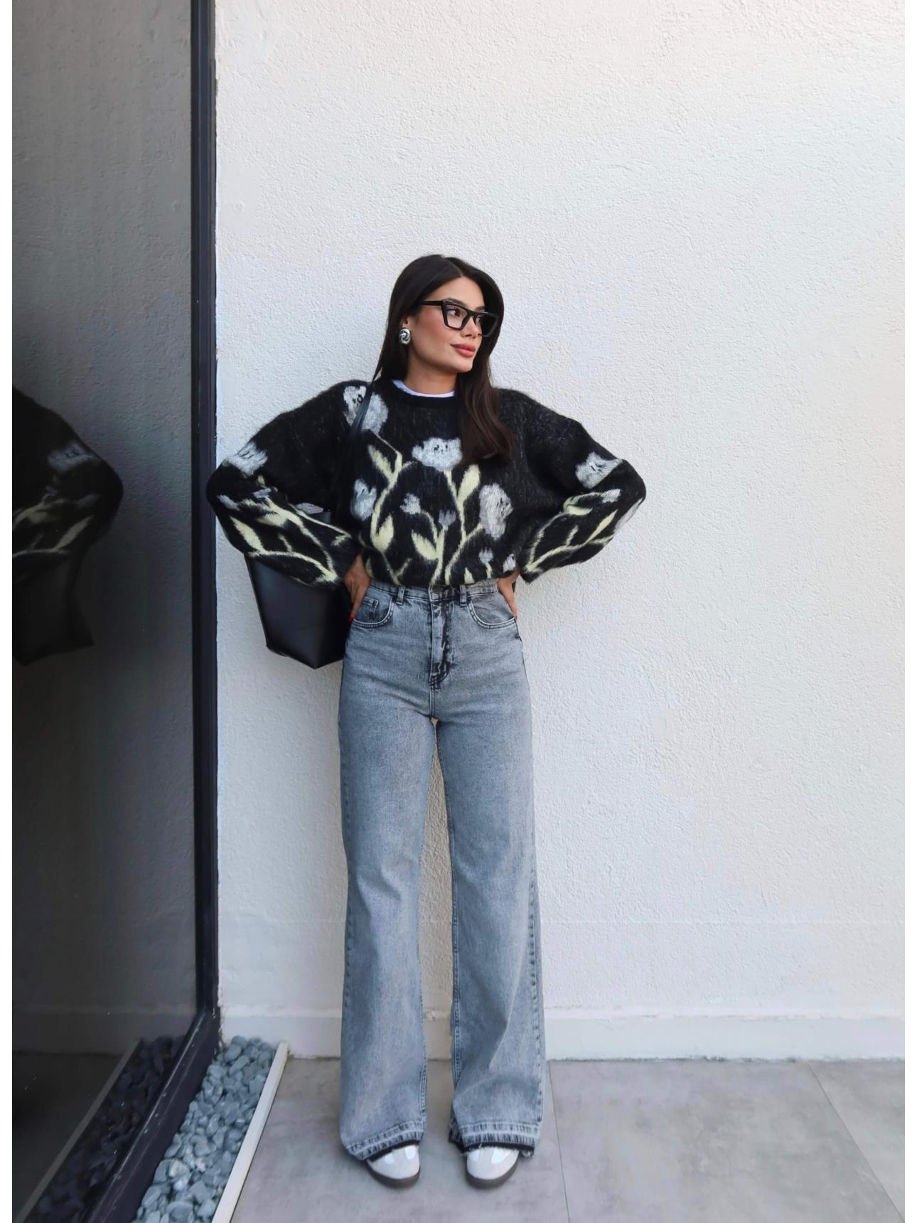 Paça Detay Likralı Wide Leg Jean (EH-5999-GRİ)