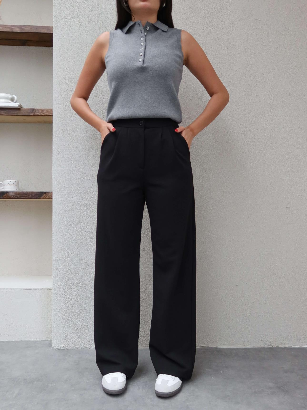 Pile Detay Likralı Pantolon (EH-5990-SİYAH)