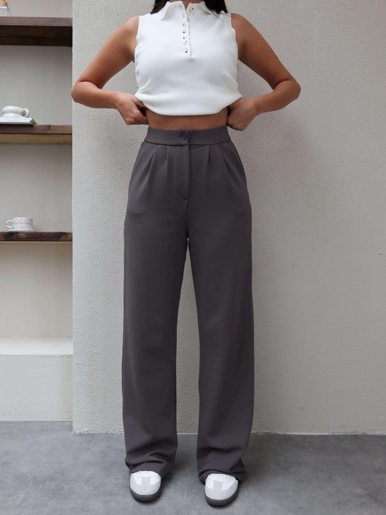 Pile Detay Likralı Pantolon (EH-5990-GRİ)