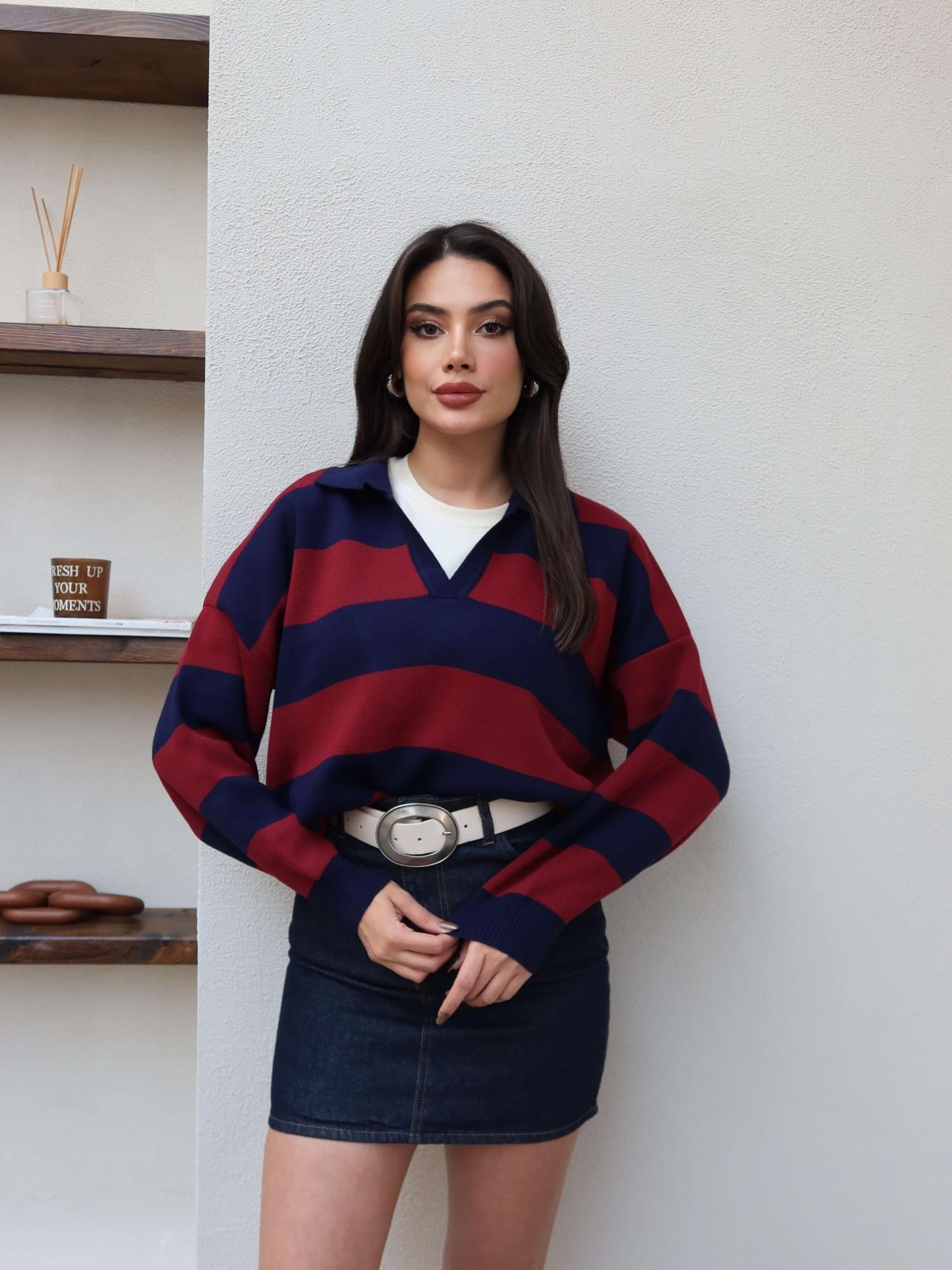 Polo Yaka Çizgili Kazak Polo Yaka Çizgili Kazak Polo Yaka Çizgili Kazak