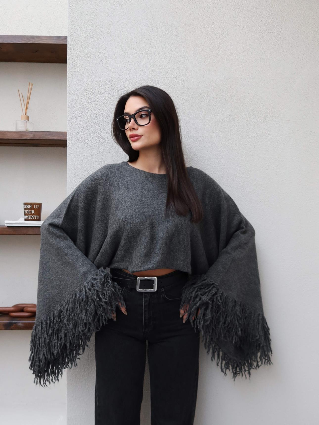 Püsküllü Triko Kazak (EH-6121-ANTRASİT)