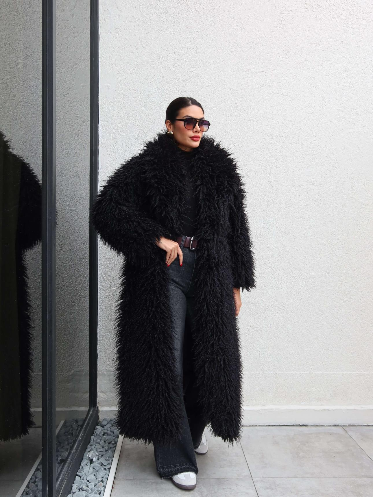 Saçaklı Premium Uzun Kürk (EH-6138-SİYAH)