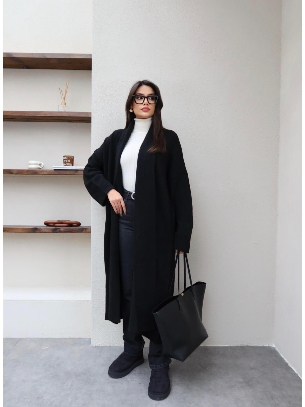Şal Yaka Uzun Hırka (EH-6095-SİYAH)