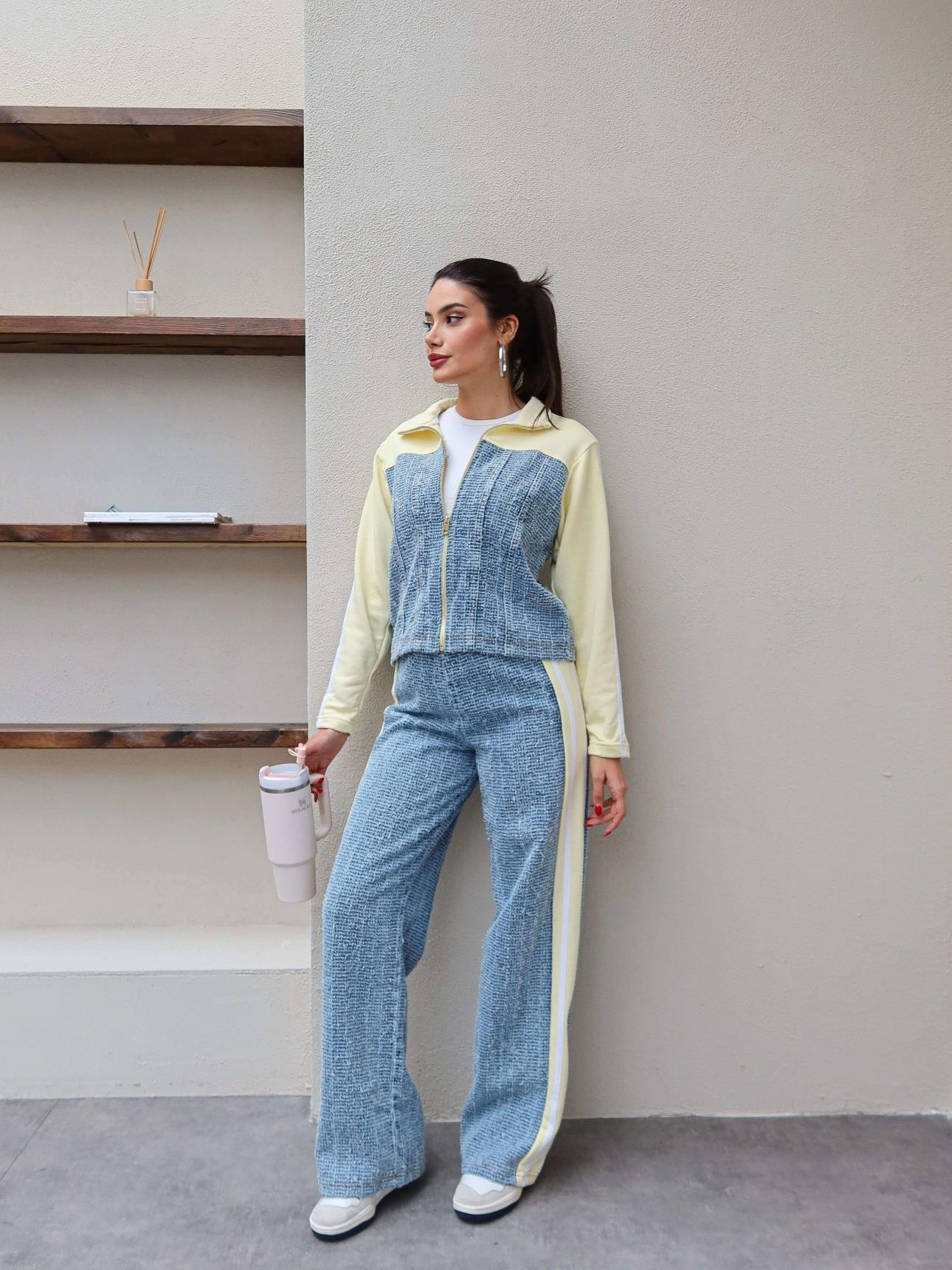 Tüvit Şeritli Eşofman Takım (EH-6047-SARI)