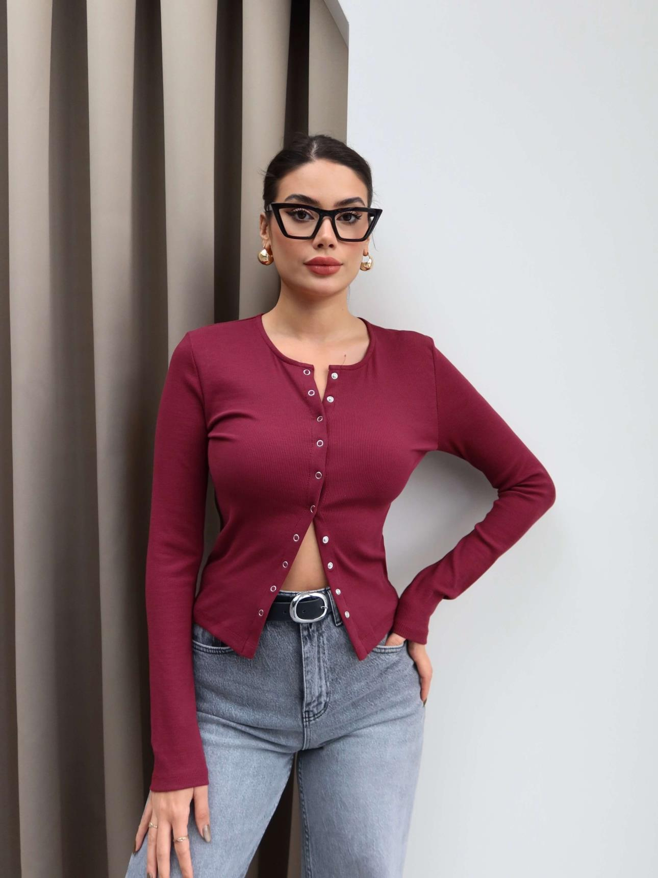 Uzun Kol Ön Çıtçıtlı Bluz (EH-6131-BORDO)