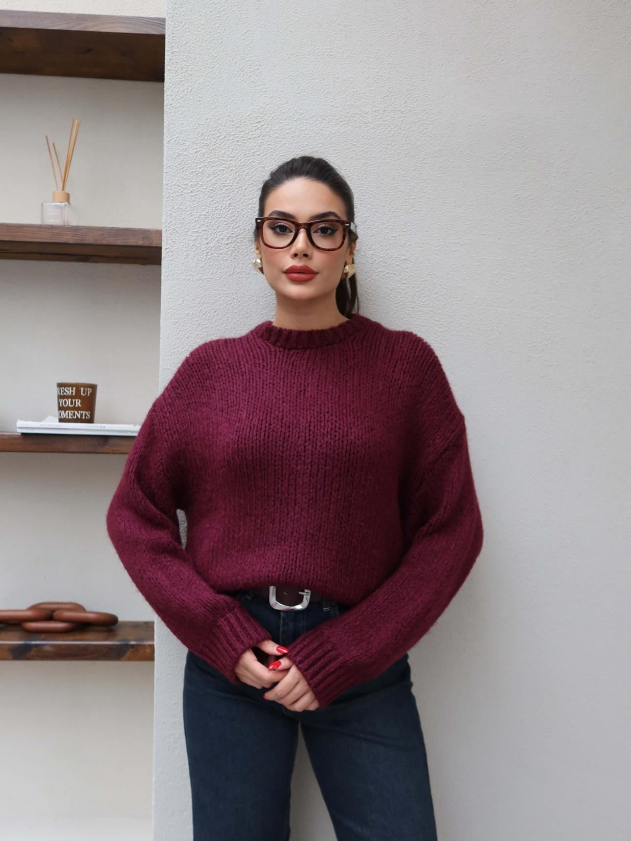 Uzun Kollu Örme Kazak (EH-6086-BORDO)