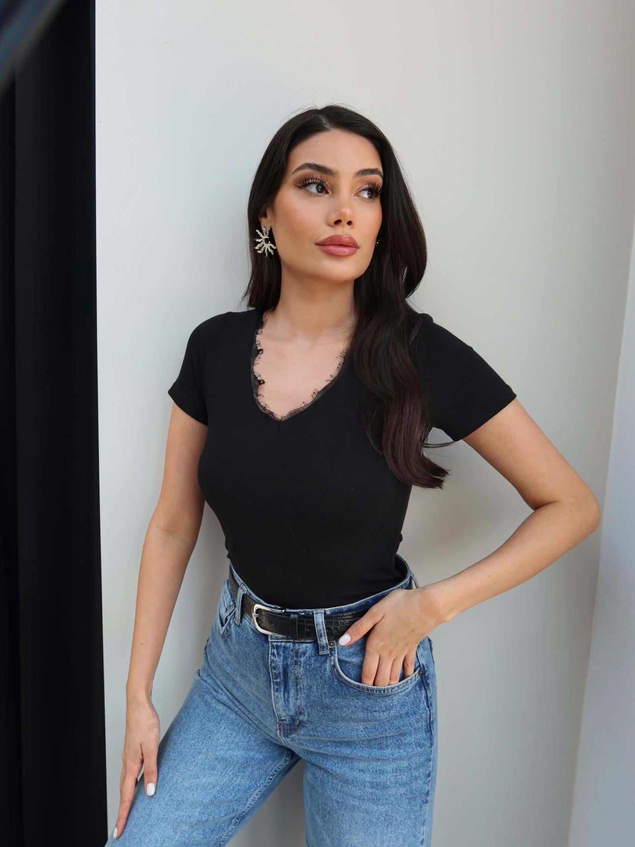 Çekimde S beden kullanılmıştır. Ölçümler S bedene göre yapılmıştır.