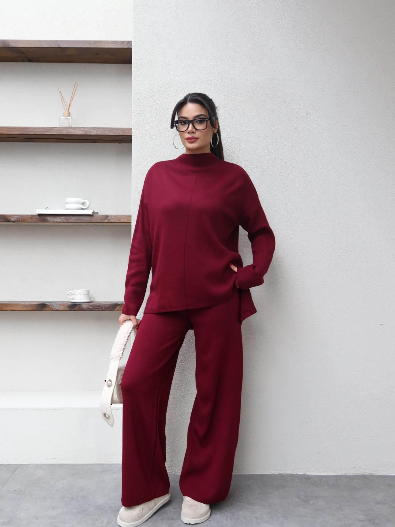Yarım Balıkçı Yaka Triko Takım (EH-6053-BORDO)
