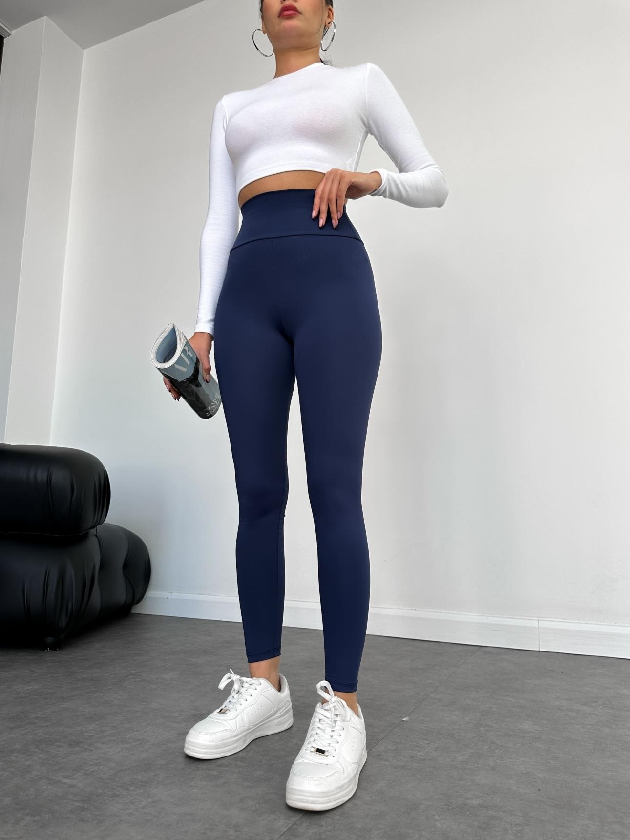 Yüksek Bel Orj Tayt (EH-6137-LACİVERT)