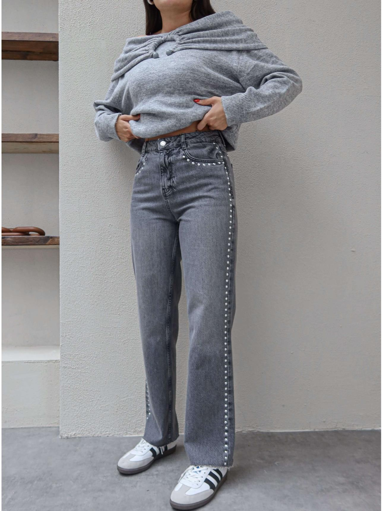 Zımba Detay Paça Kesik Jean (EH-6071-ANTRASİT)