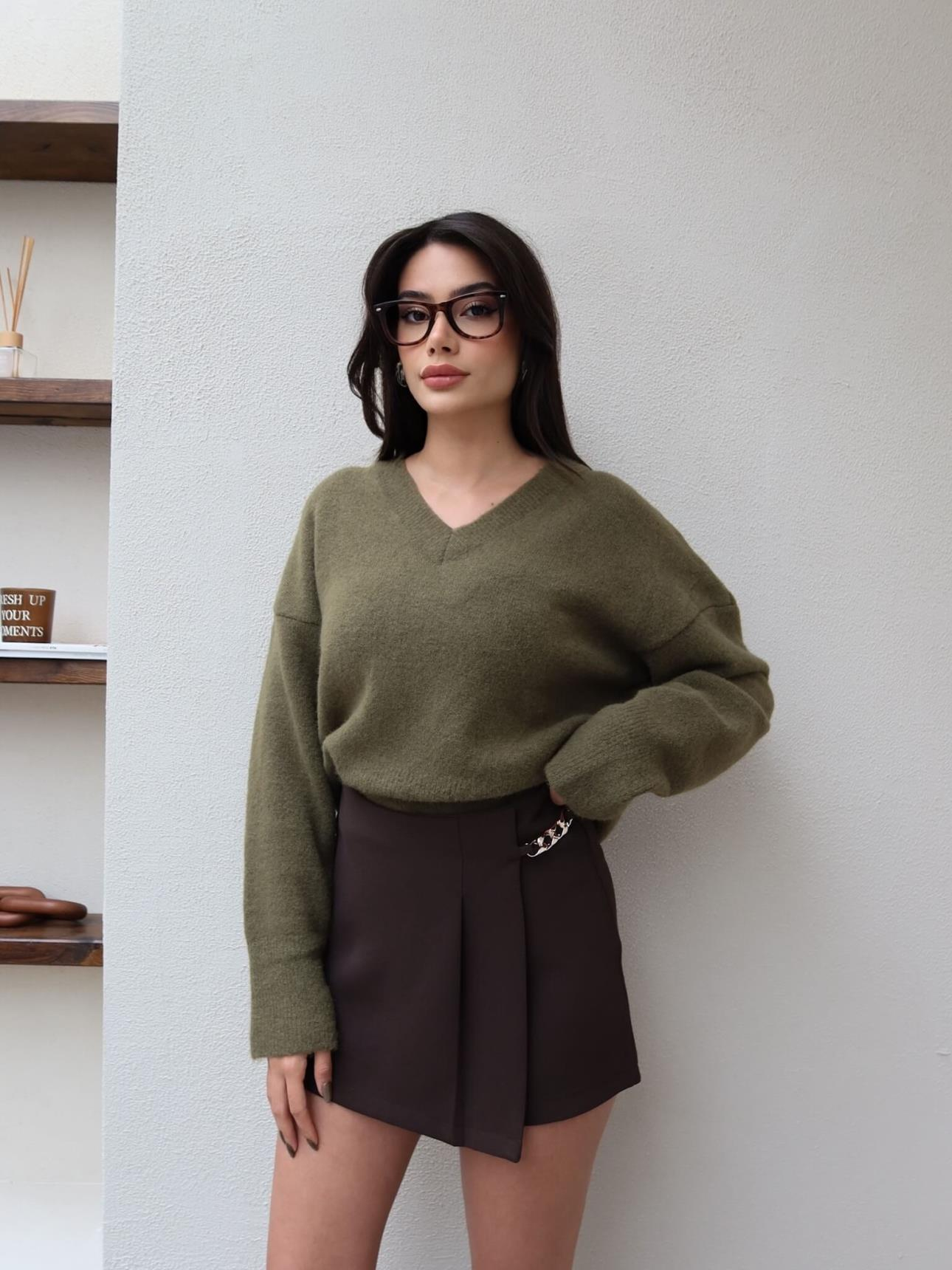 Zincir Detaylı Şort Etek (EH-6103-ACIKAHVE)